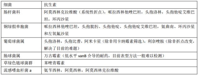 ⑴抗微生物药物活性有不确定的效果;这意味着分离株所致感染